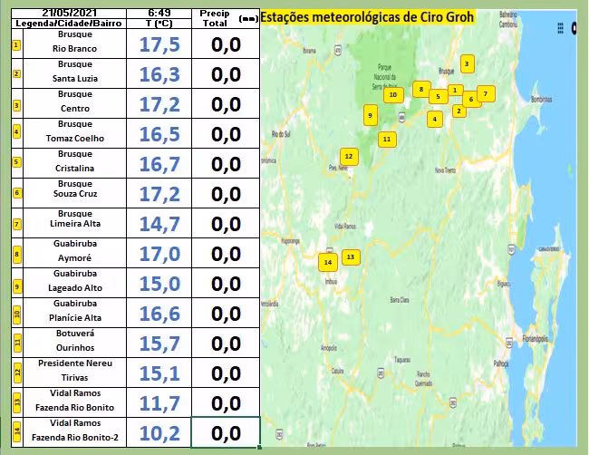 Pela primeiras vez na semana, todos os municípios do Vale do Itajaí-Mirim começaram a manhã acima dos 2 dígitos.