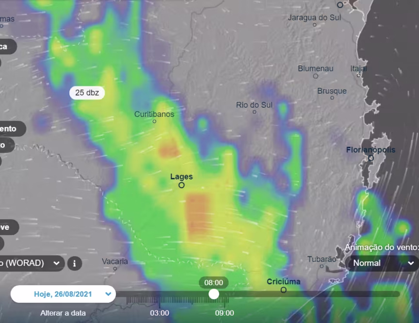 "Ao longo desta quinta-feira teremos a passagem de uma frente fria sobre o Vale do Itajaí. Isso vem potencializar a condição para chuva fraca a moderada e isolada acompanhada de alguma trovoada".