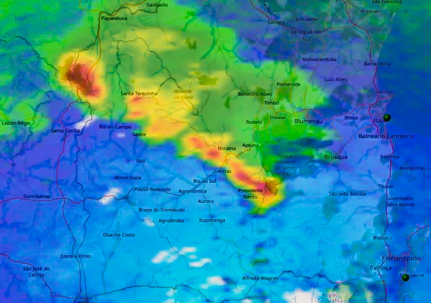 Neste sábado, a atuação de um sistema de baixa pressão posicionado sobre o oeste de SC deixa o tempo instável em Brusque.