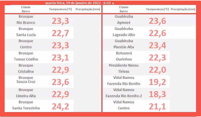 A propósito, a madrugada que passou se apresentou quente não só no Berço da Fiação Catarinense, mas também, por quase todo o Vale do Itajaí-Mirim.