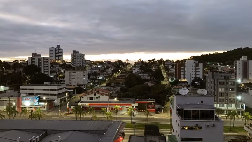 "A partir da tarde, a atuação do transporte de umidade do oceano em direção à faixa leste de SC potencializa aumento de nuvens sobre o Vale. Diante disso, não descartamos a condição favorável a chuviscos bem isolados".