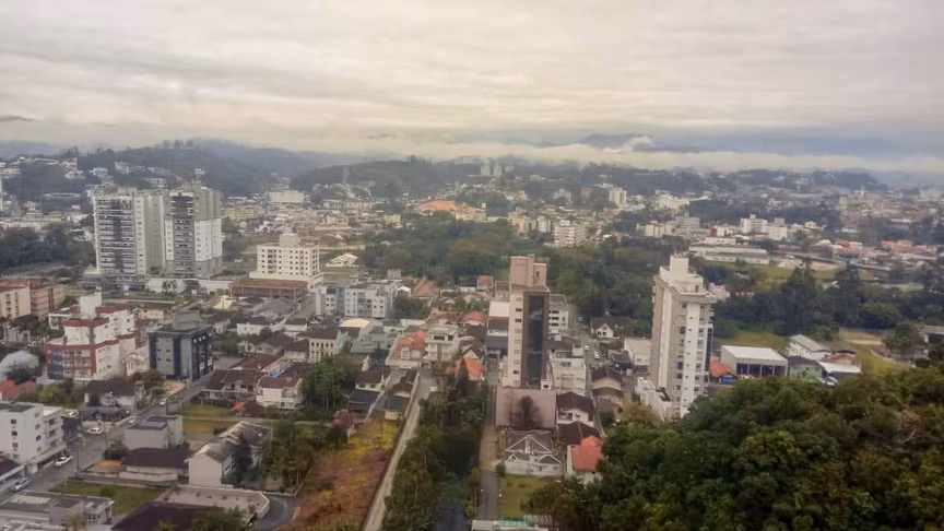 Abaixo estão Botuverá e Vidal Ramos, que igualmente começaram a sexta-feira com céu cinzento: