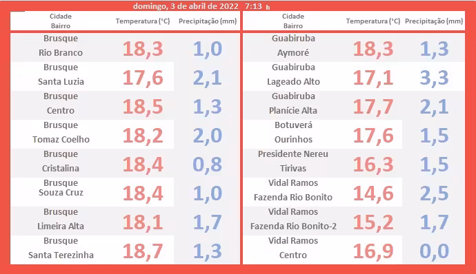 Dando seguimento à edição deste domingo, vamos seguir com as informações do tempo, agora, trazendo um resumo do que ocorreu no Vale do Itajaí-Mirim na madrugada que passou.