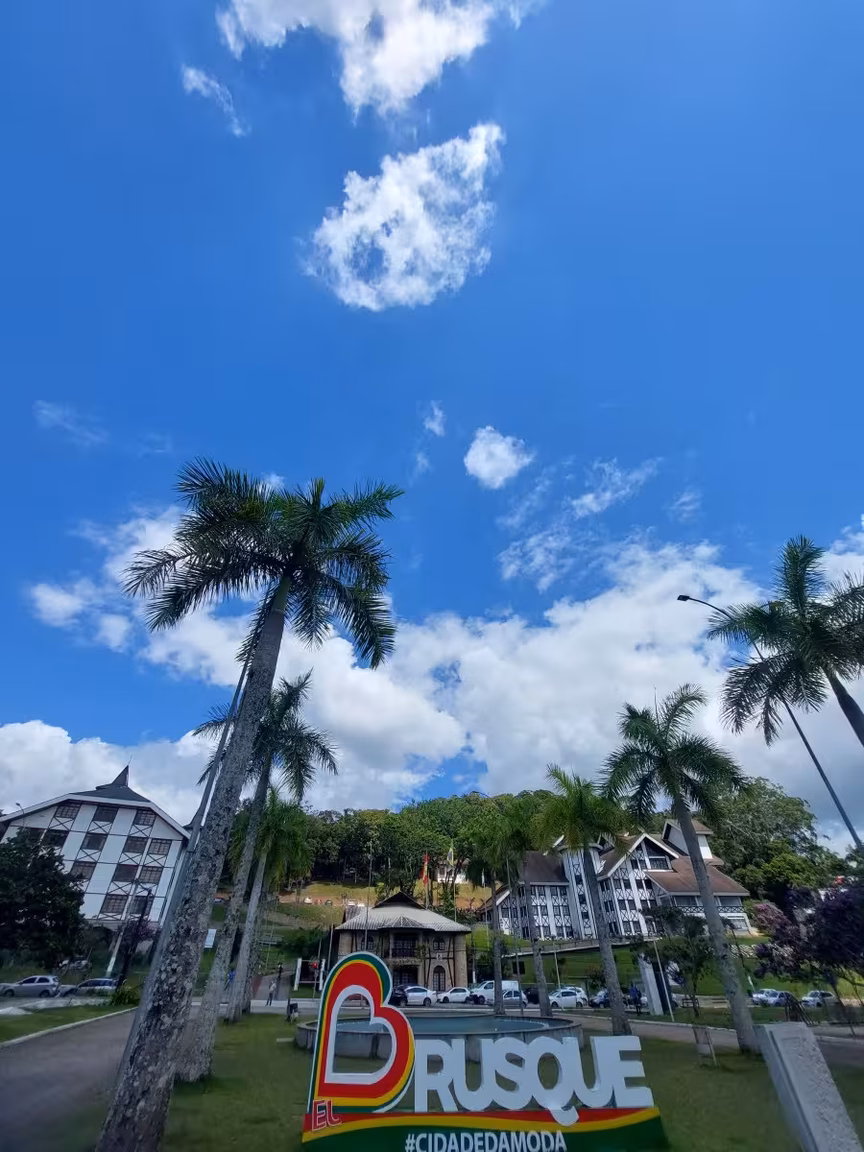 "Calor normal de verão com máximas que tendem a oscilar 30 a 33/34ºC para vocês, brusquenses e moradores das cidades do entorno".