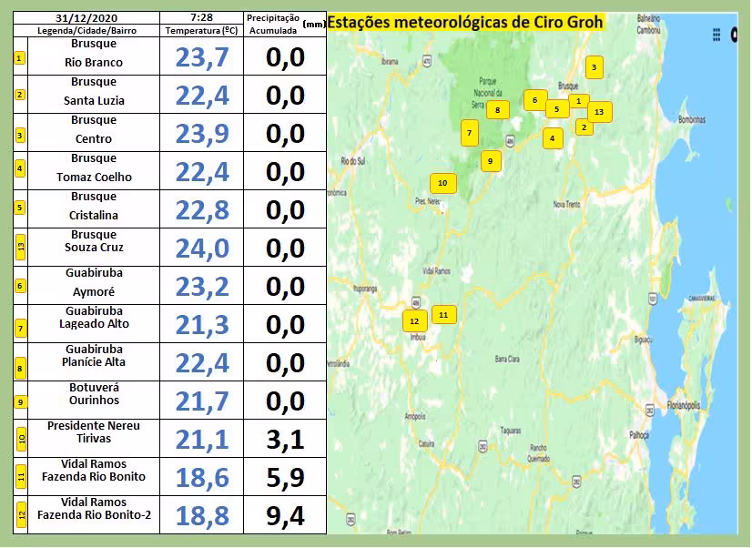 Confira na íntegra, o boletim emitido por este profissional. Condição válida também para a região de Brusque: