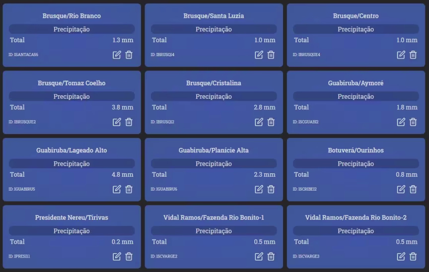 Os volumes medidos até o amanhecer de hoje não foram além dos 2 mm. Confira a precipitação registrada em cada lugar descrito na tabela abaixo: