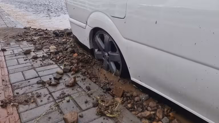 No município serrano de São Joaquim, ruas ficaram alagadas e o vento derrubou galhos de árvores. Para completar o cenário adverso, teve também, queda de granizo.
