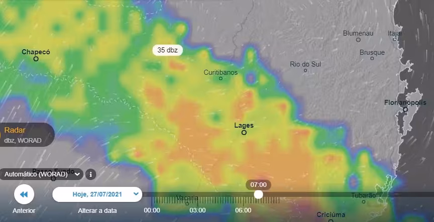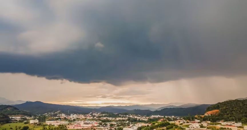 "Para vocês, brusquenses e moradores da região, a chuva deve chegar ainda pela manhã desta terça-feira e também sai rápido. O frio que vem a seguir é muito forte e empurra o sistema de umidade para longe".