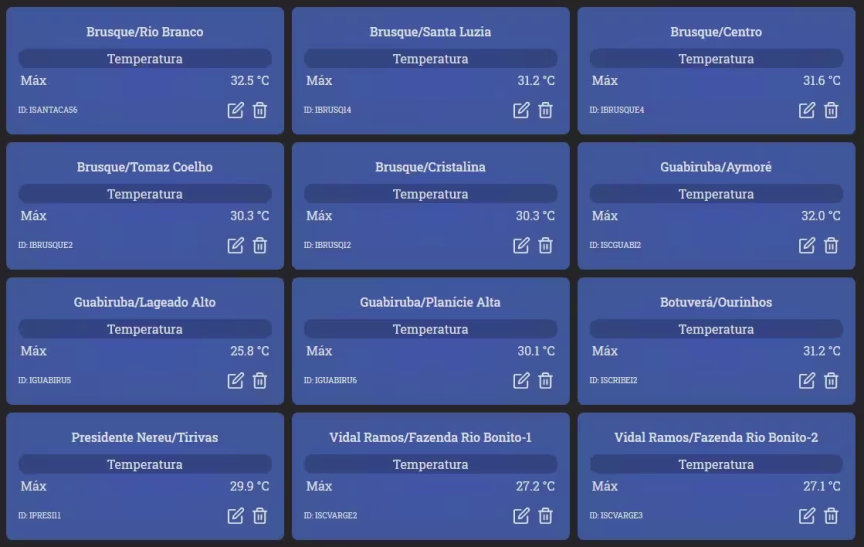 Abaixo temos a tabela mostrando quais os locais que tiveram ocorrência de chuva. No Alto Vale, o tempo seco predominou.