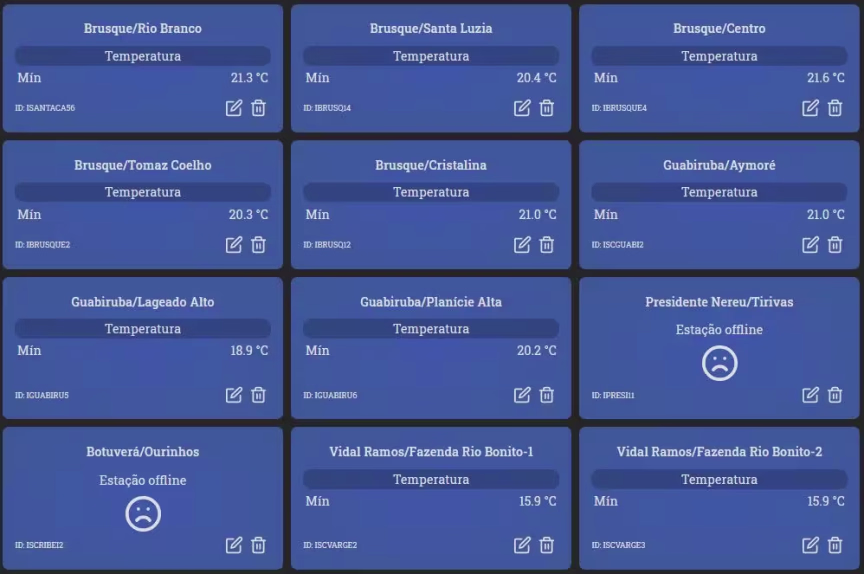 Abaixo, as mínimas da madrugada/amanhecer de hoje no Vale do Itajaí-Mirim. A sexta-feira começou fresquinha em Vidal Ramos: