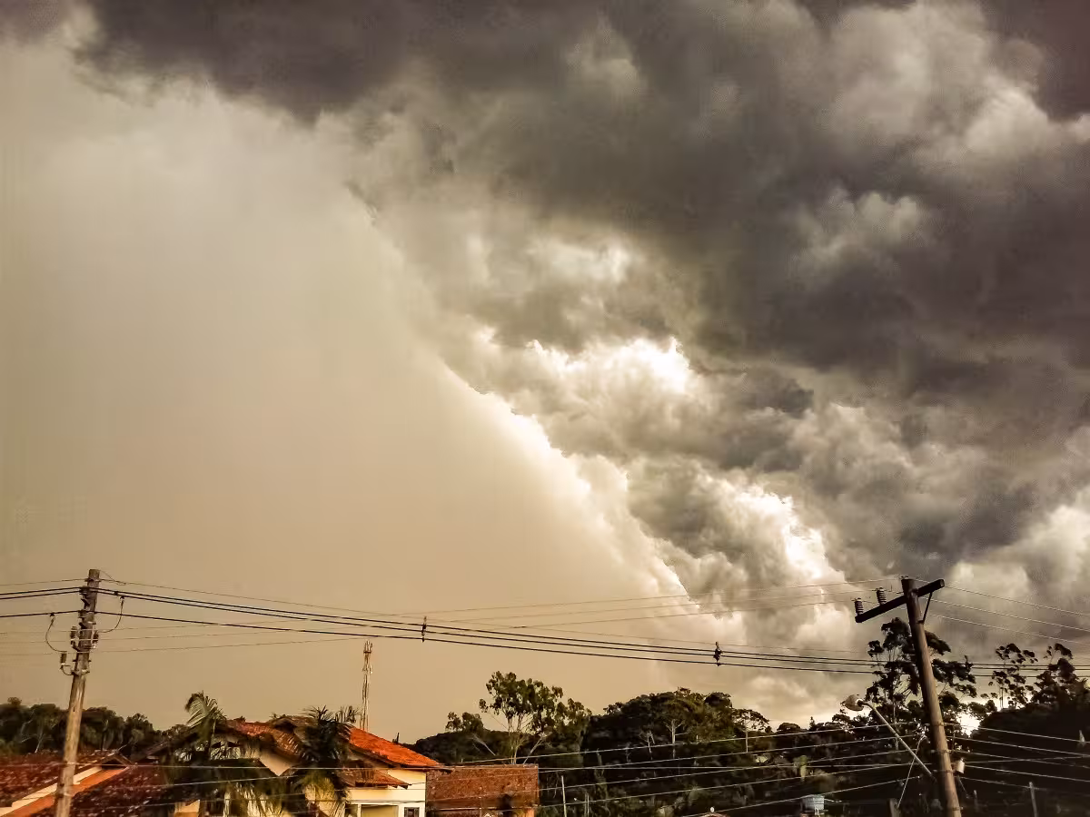 A partir do final da manhã, a nebulosidade aumenta e há condição para pancadas de chuva com trovoadas devido a influência um sistema de baixa pressão. Não se descarta o risco para temporais isolados.