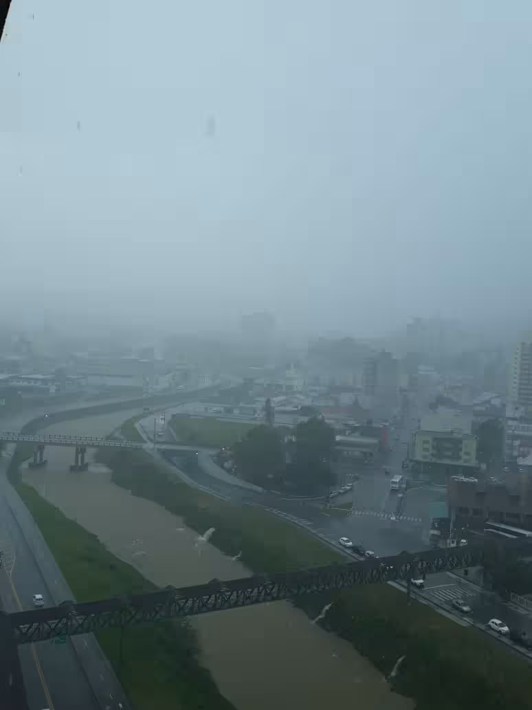 Em Brusque, a precipitação registrada por volta de 16h30 oscilou índices entre 18 a 26 mm pelos bairros do município.
