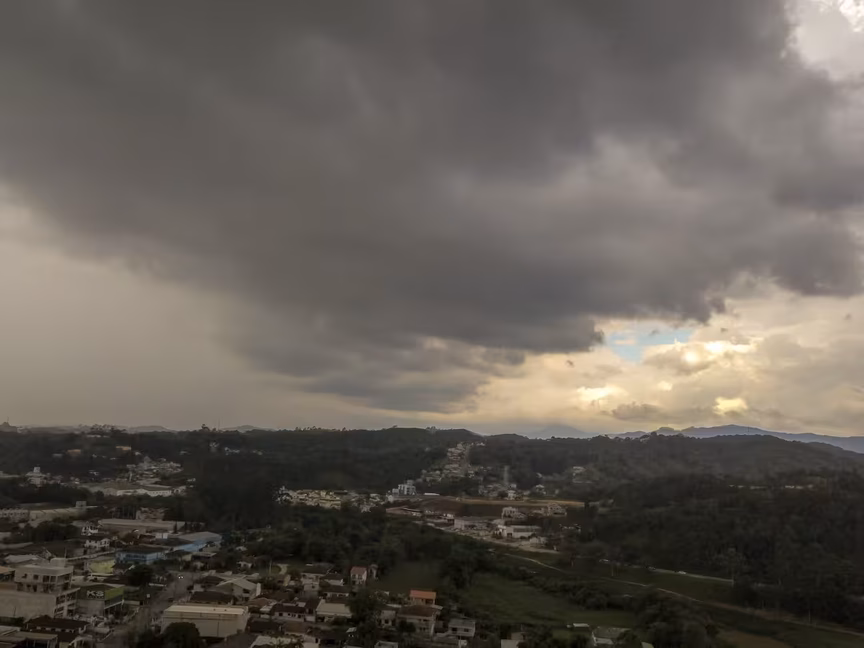 Imagens desta tarde de sexta-feira mostram a escuridão no céu brusquense