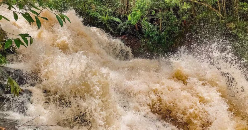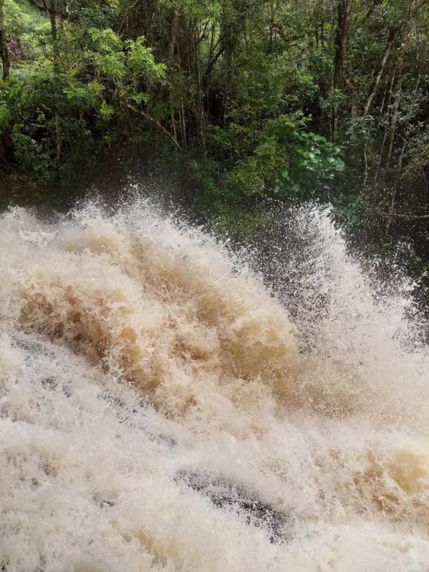 Porém, a chuva expressiva proporcionou também um lindo espetáculo de imagens nas cachoeiras espalhadas no interior de Brusque. Uma delas, situada na localidade do Taquaruçu, protagonizou cenas de tirar o fôlego.