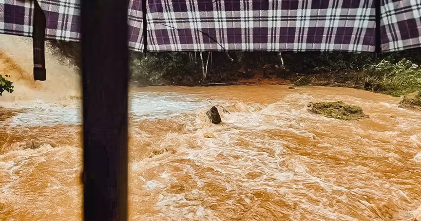 Acompanhe na sequência as imagens expostas no vídeo registrado por Leandro Raiser, morador da localidade do Taquaruçu. As cenas expõem a beleza da cachoeira, tendo seu fluxo de água incrementado pelo alto volume de chuva.