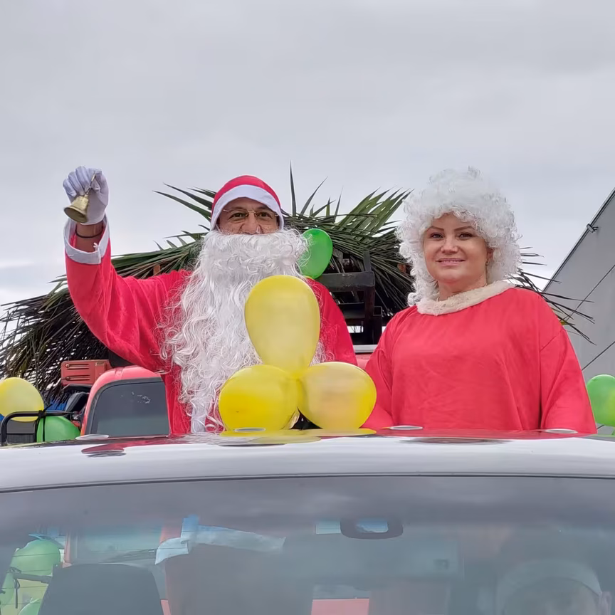 Nem o tempo instável presente em Brusque na tarde deste domingo, 18, tirou o ânimo dos participantes da carreata de Natal, que passou pelo bairro Rio Branco. O evento mais uma vez atraiu a atenção de muitas pessoas, principalmente de crianças, que aguardavam ansiosas à beira da estrada pela passagem do bom velhinho e toda a movimentação alusiva à ocasião.