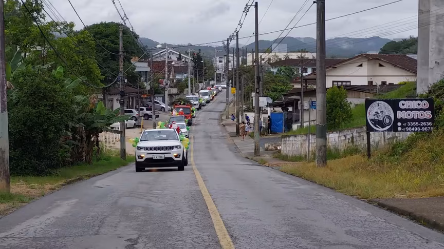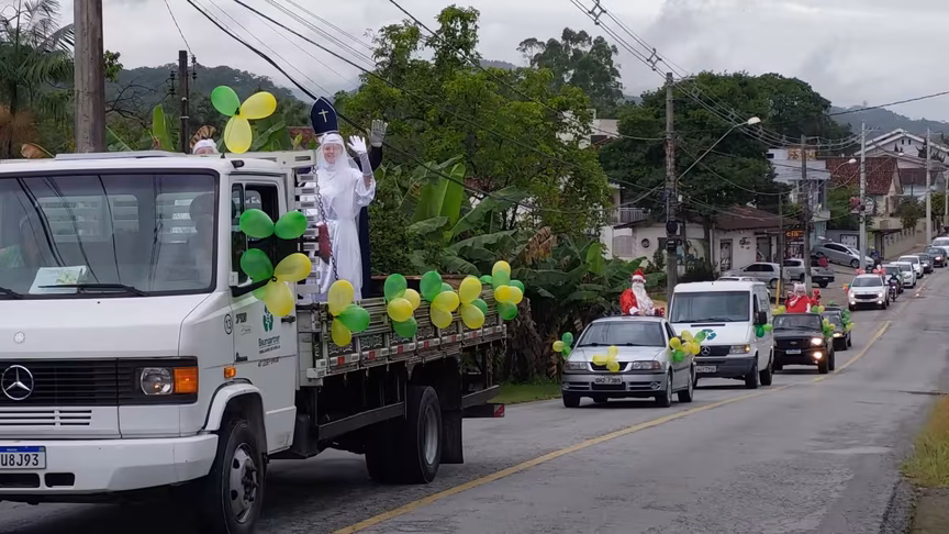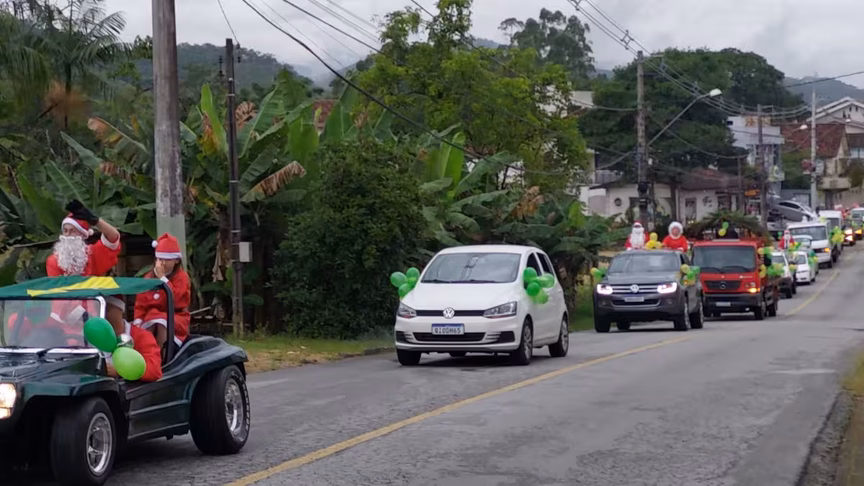 VÍDEO – Domingo chuvoso em Brusque teve carreata de Natal no bairro Rio Branco; assista