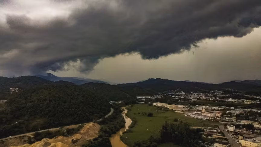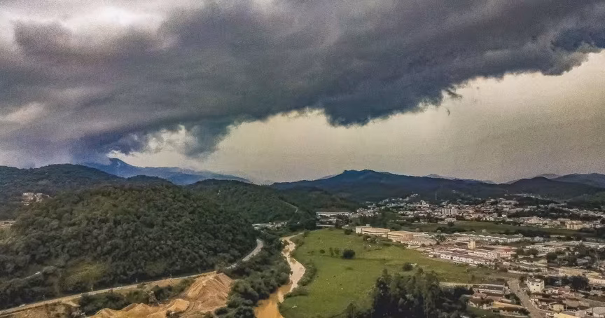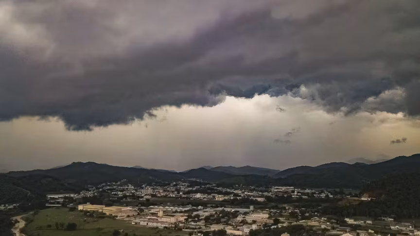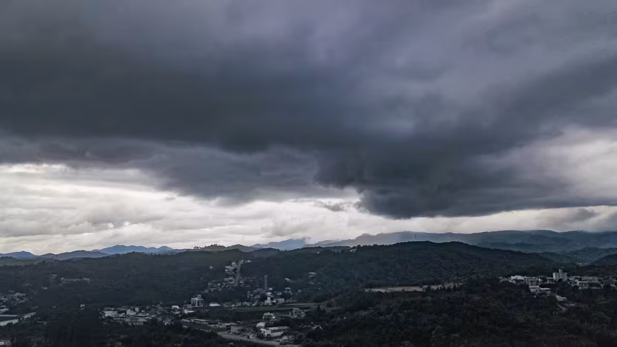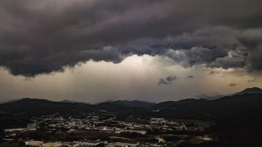 VÍDEO – Drone capta chegada da trovoada enquanto céu de Brusque escurece