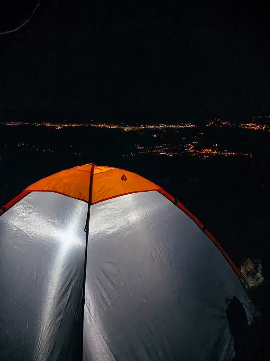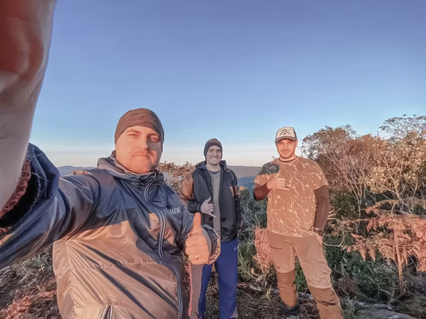 Diante dessa condição de frio extremo, os guabirubenses Tiago Habitzreuter, André Rubiki e Nathan Pagani aproveitam a virada do tempo e o clima perfeito e programaram um acampamento no alto do Spitzkopf, em Guabiruba.