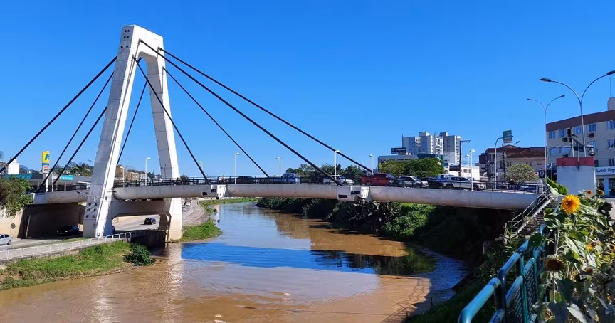 Situação de normalidade, diante da marca de 3,20 metros conferida às 13h30 desta terça-feira, junto às réguas de medição fixadas bem próximas à Ponte Estaiada: