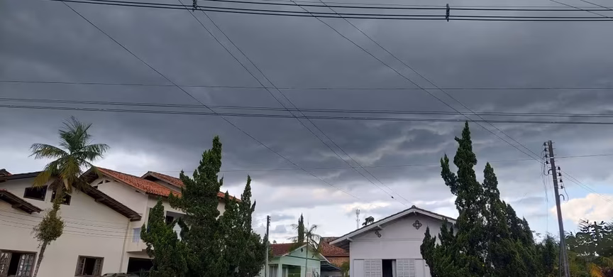 Os moradores de Brusque ficaram espantados nesta segunda-feira, 31, quando o dia virou noite diante da repentina virada do tempo ao entardecer, isso, depois do forte calor que impactou o município.