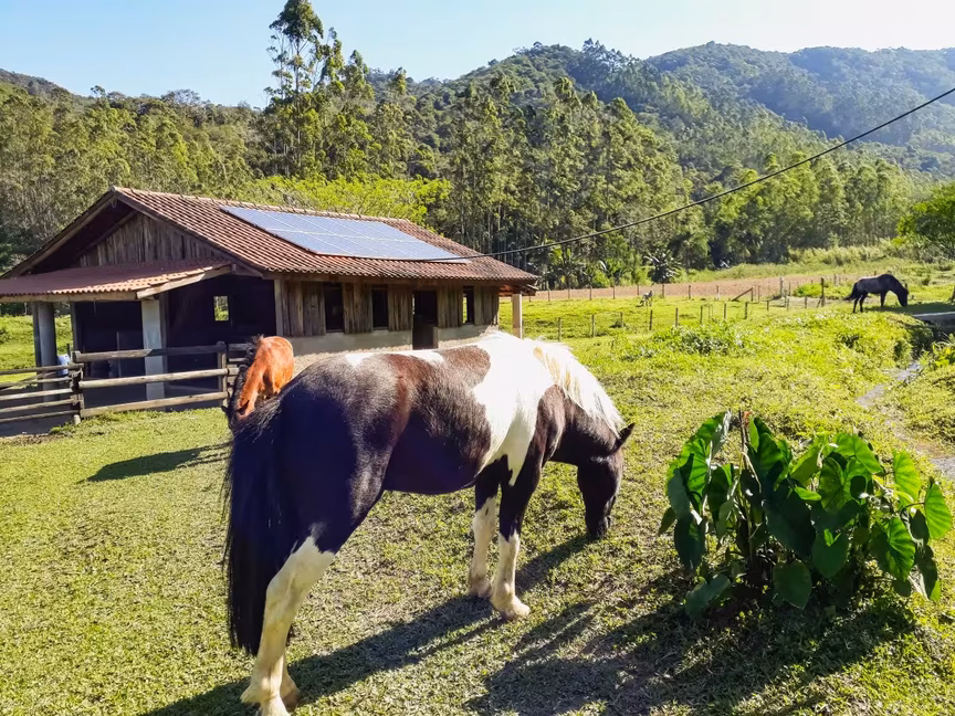A imagem abaixo mostra que os cavalos pareciam não se importar muito com o forte aquecimento presente no bairro Planície Alta, em Guabiruba: