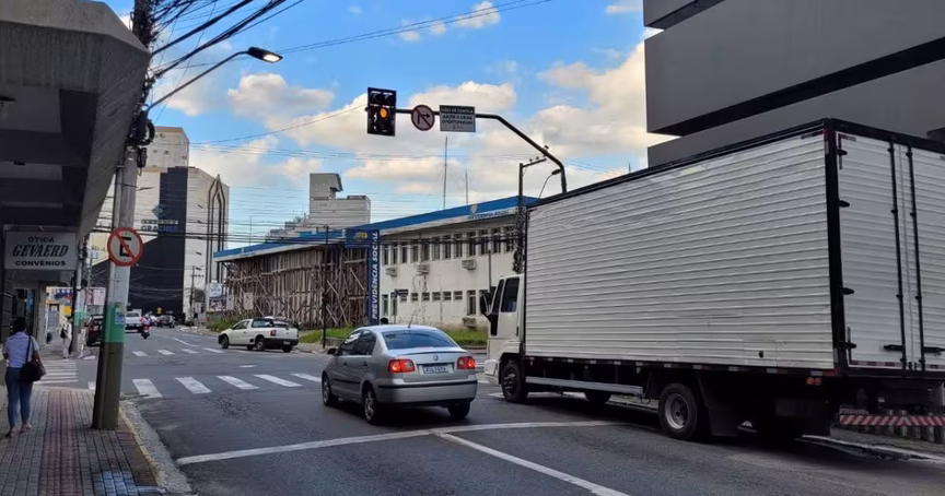 Danificado em tempestade, semáforo de cruzamento no Centro apresenta novos problemas após conserto