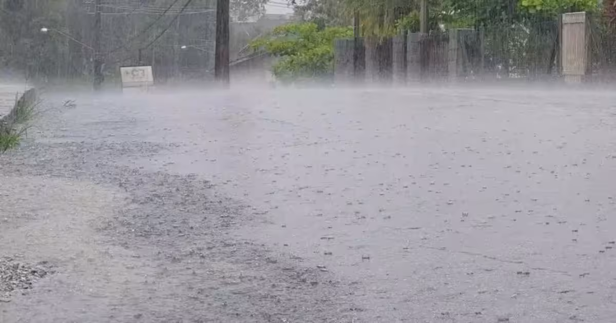 Segundo a previsão da Defesa Civil, a chuva deve iniciar as 12h. O risco é alto para danos como destelhamentos, queda de árvores e danos na rede elétrica.