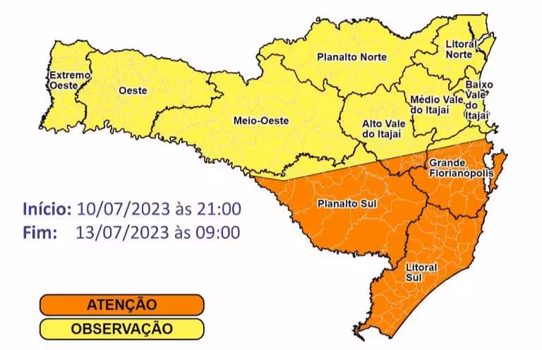 No decorrer desta semana, entre esta segunda-feira, 10 e a manhã de quinta-feira, 13, deve ocorrer chuva persistente em Santa Catarina. Em Brusque, a previsão é que os acumulados possam chegar a 60 milímetros neste período.