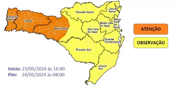 De acordo com a Defesa Civil, as regiões em atenção são Extremo Oeste, Oeste e Meio Oeste. As demais regiões estão em observação.