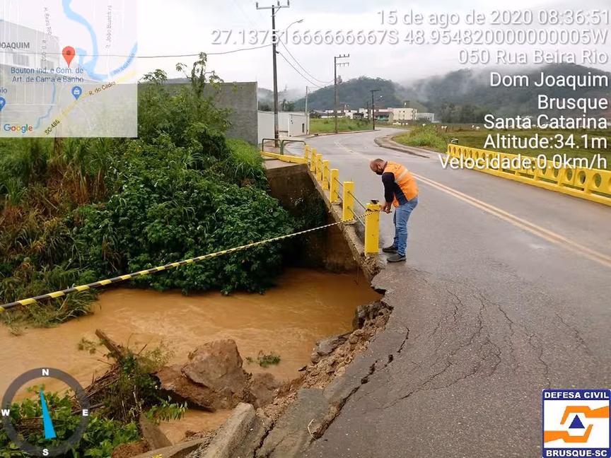 Segundo André Archer, Diretor da Defesa Civil, o acumulado de chuva apenas na cidade de Brusque, nas últimas 96 horas, foi de 91 milímetros, sendo que somente nas últimas 12 horas a precipitação foi de 38 milímetros.