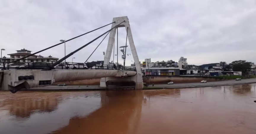 De acordo com as atualizações da Defesa Civil de Brusque, por volta das 2h44, o rio estava com 2,9m. Já às 8h, 4,54m. O rio sai da calha por volta dos 4,75m.
