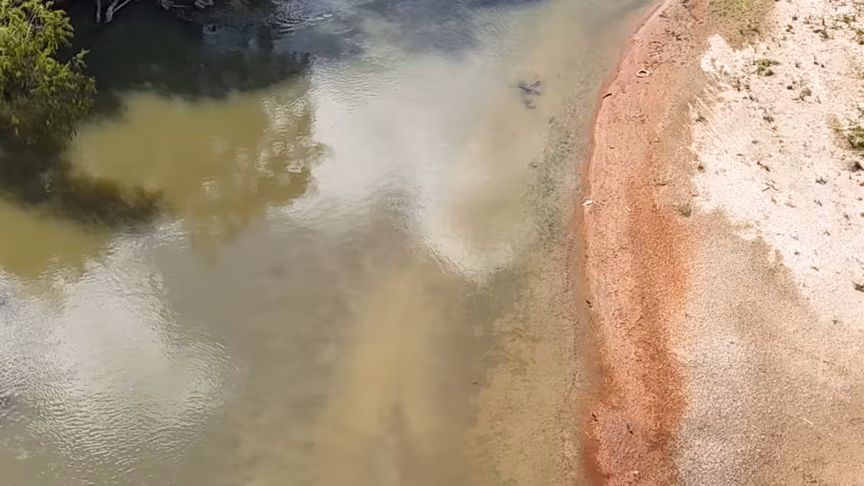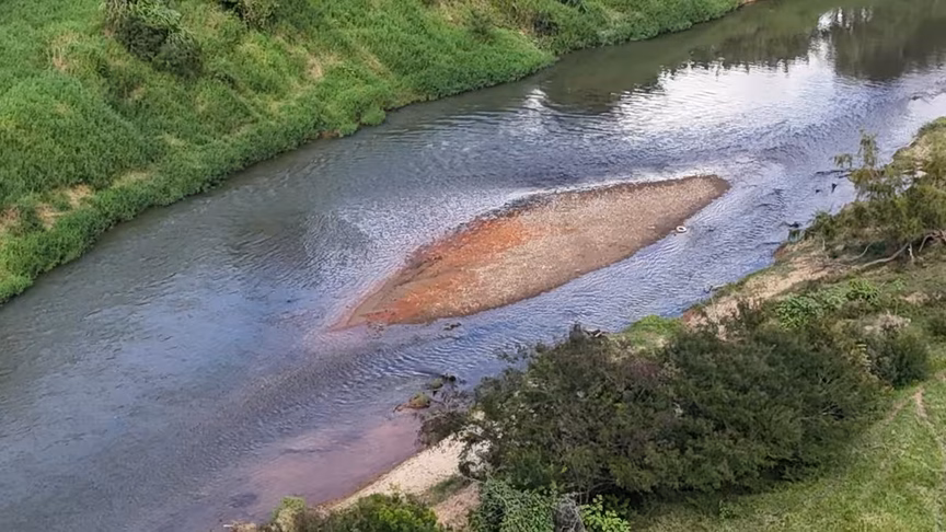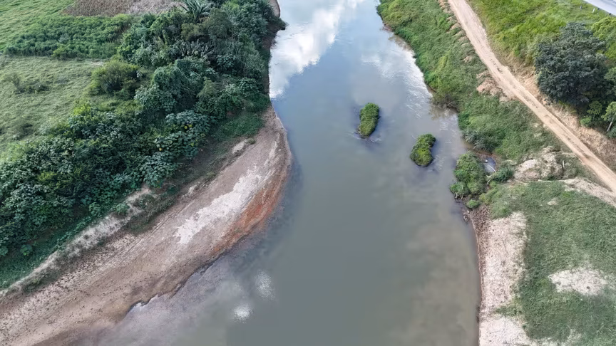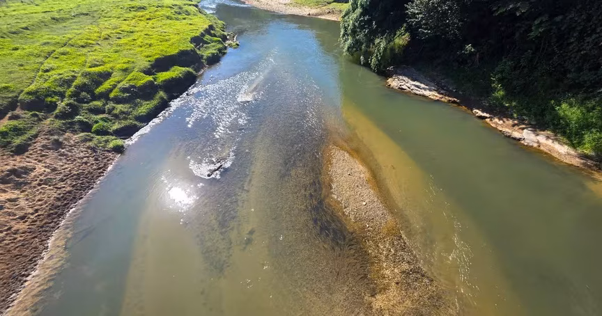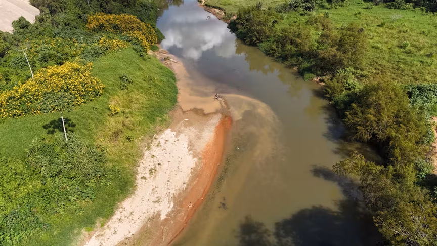 O rio Itajaí-Mirim, habitualmente conhecido por sua correnteza mais vigorosa, já apresenta sinais visíveis de retração.