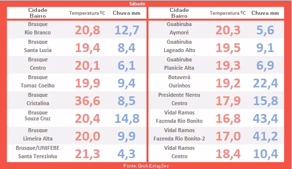 Na sequência desta edição de sábado, vamos agora abordar as informações referentes ao monitoramento do tempo na região de Brusque durante a madrugada.