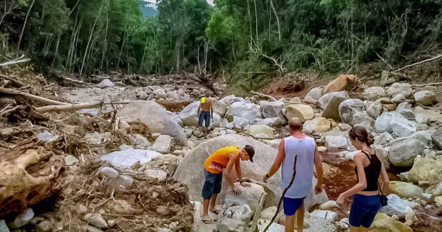 A força descomunal das águas em fúria arrastou consigo uma diversidade impressionante de troncos de árvores nativas e pedras monumentais, o que culminou em uma revelação: uma clareira previamente inexplorada no coração da floresta passou a ser exposta.