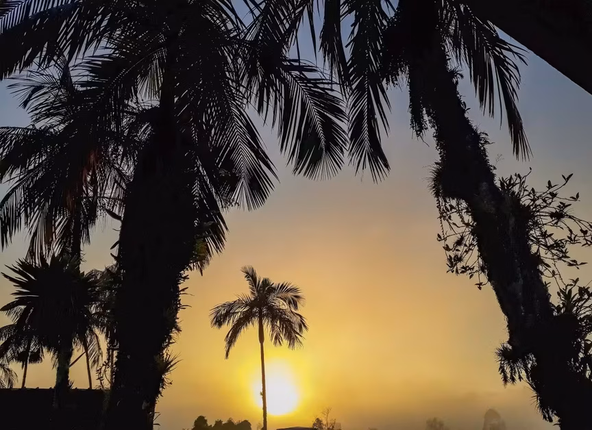 O belo amanhecer deste domingo visto do alto do Morro São José, em Guabiruba