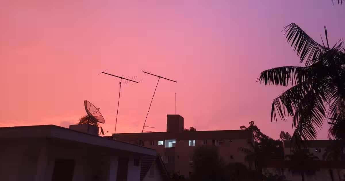 Essas substâncias interagem com a luz solar e tornam o céu rosa, roxo e laranja, principalmente no início do dia e próximo ao pôr do sol (caso desta sexta-feira).