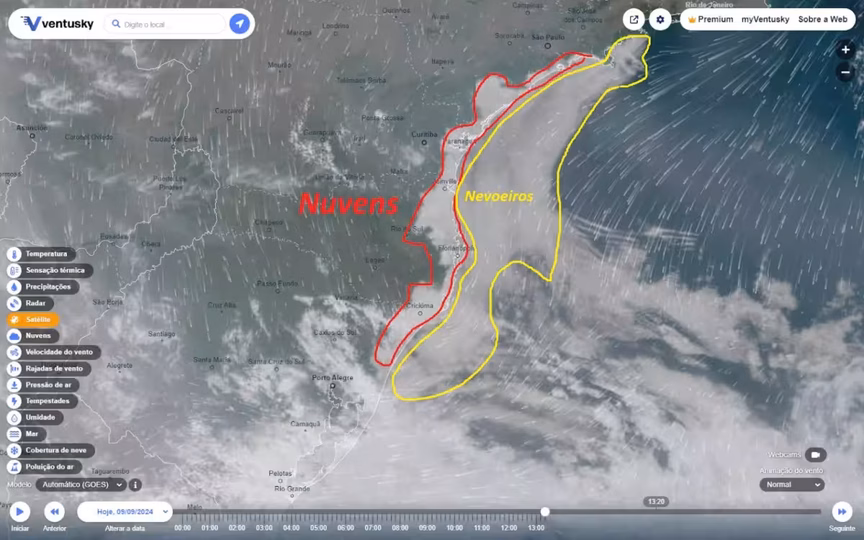 No Litoral de Santa Catarina, além da fumaça, a redução na visibilidade ainda ocorre por conta dos nevoeiros marítimos, fenômeno também associado à atuação da massa de ar mais quente.