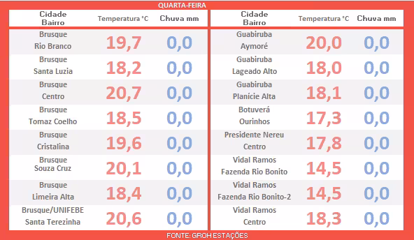 *Com informações do meteorologista Piter Scheuer