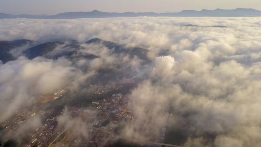 Visto do alto: nevoeiro toma conta de Brusque nesta terça-feira