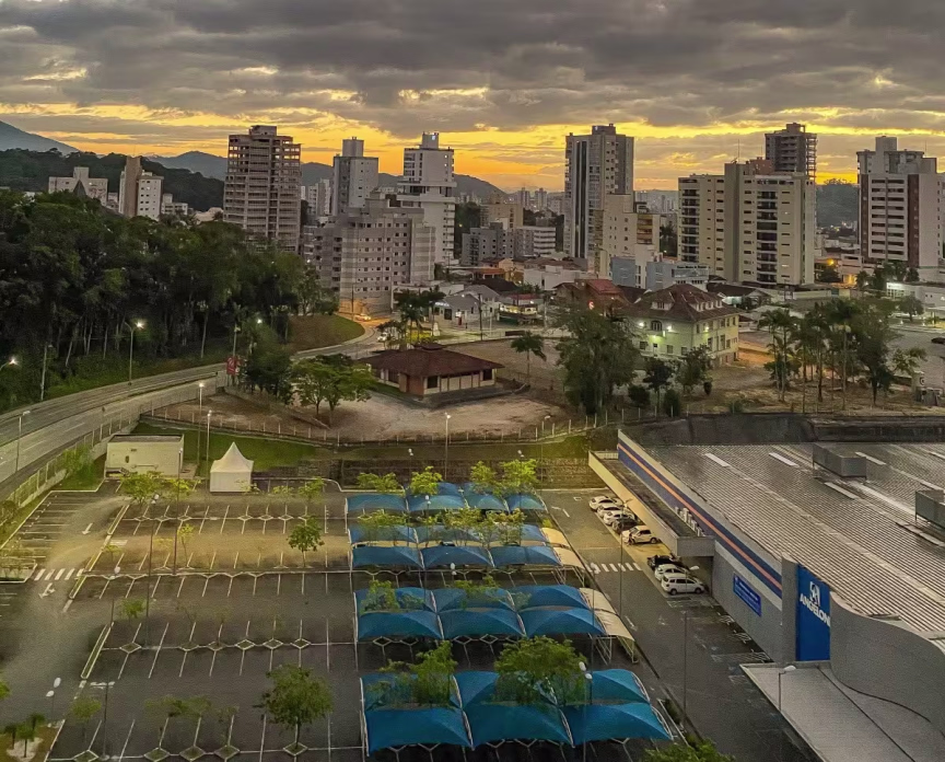 Imagens aéreas mostram Brusque ao entardecer desta quinta-feira