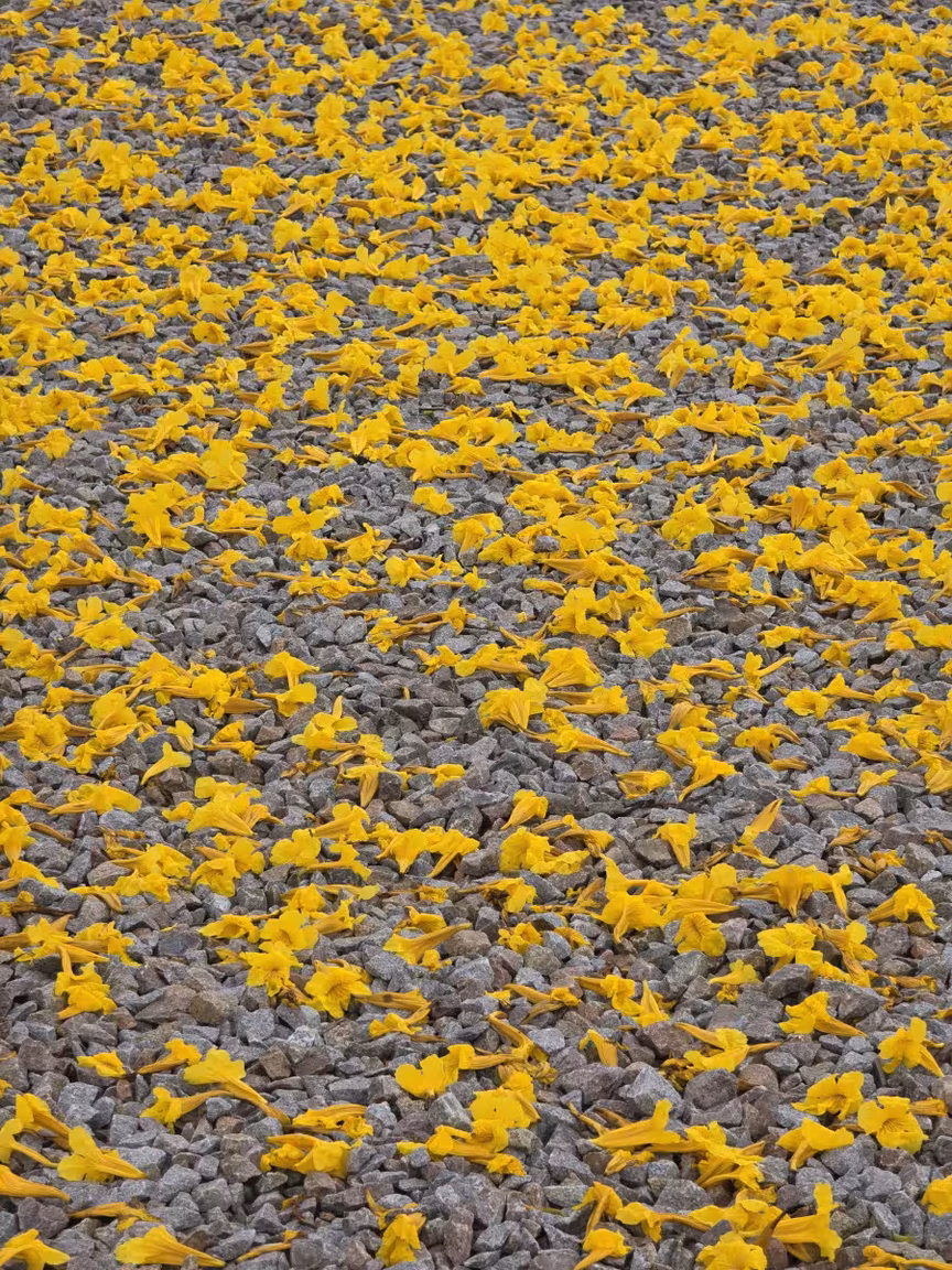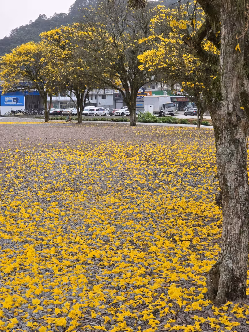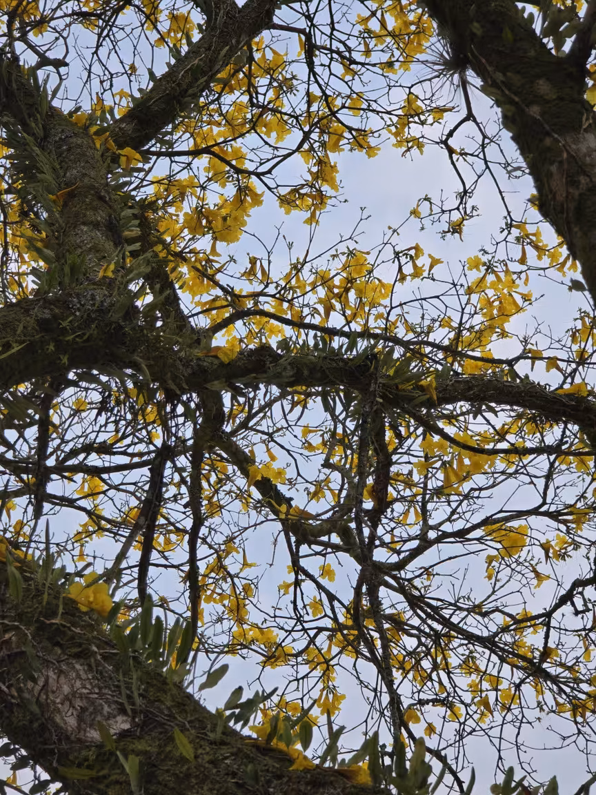 Logo na entrada, os majestosos ipês amarelos erguem-se como guardiões da primavera, e com isso, suas flores vibrantes emolduram o espaço diante de um espetáculo natural que simplesmente rouba o fôlego de quem aprecia.