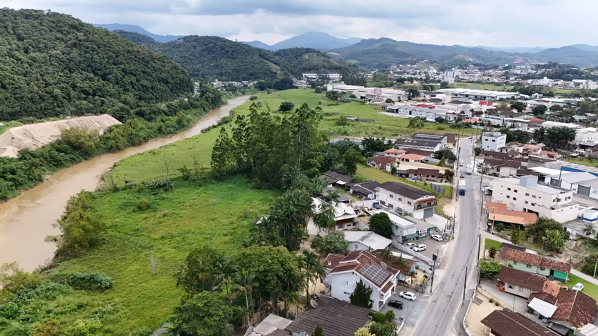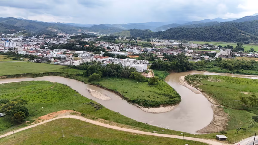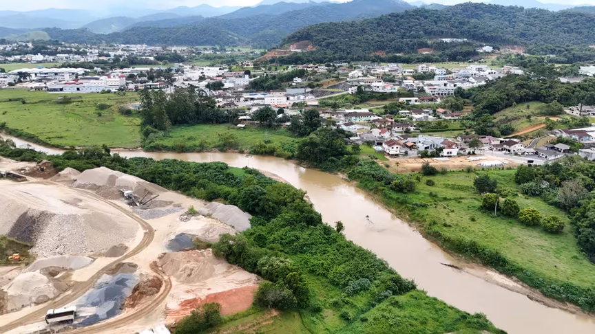 A escassez de chuvas, por sua vez, contribuiu para transformar a paisagem, criando um cenário quase árido em pleno Vale do Itajaí, algo incomum para a região.