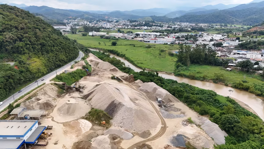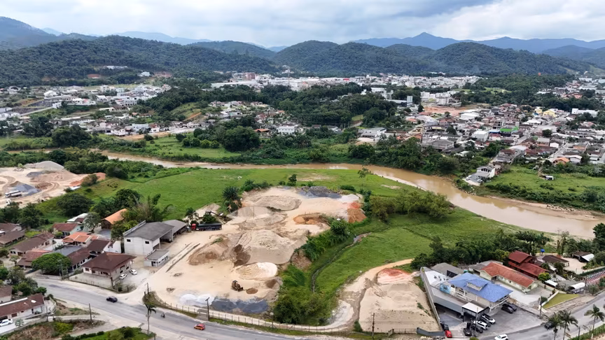 1. Drone então sobrevoa a nova Beira Rio e registra o progresso das obras em Brusque