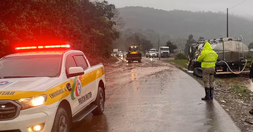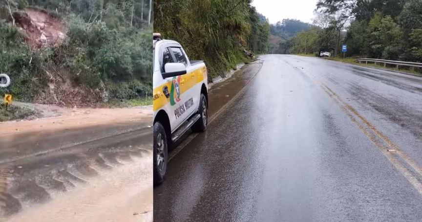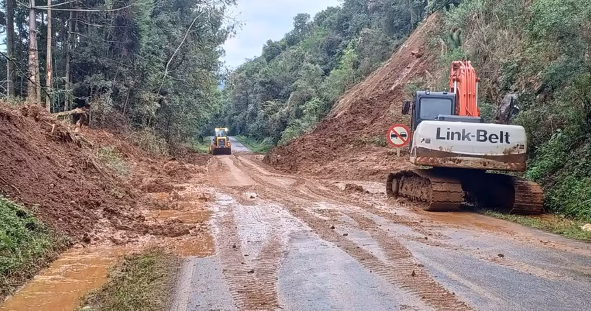 A lama também tomou a rodovia-464, entre Arroio Trinta e Salto Veloso, também no Oeste. As equipes trabalhavam no local e a liberação estava prevista para o final da tarde de quarta-feira. No entanto, a informação se o trecho foi liberado não foi divulgada.