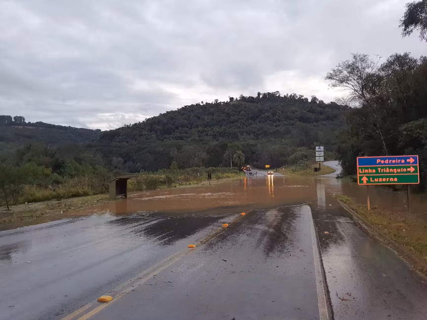 Na mesma rodovia, porém, no trecho entre Ibicaré e Luzerna, a água invadiu a pista e resultou na interdição completa da rodovia na região nesta quarta-feira.