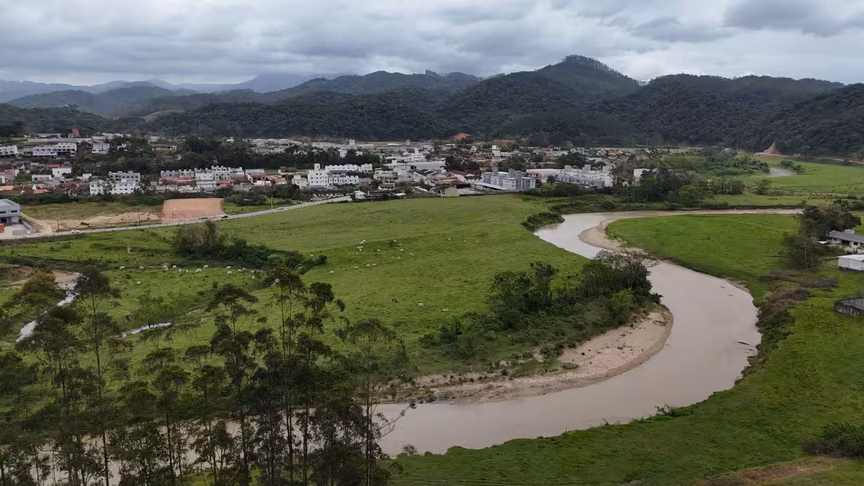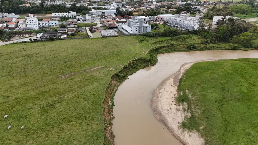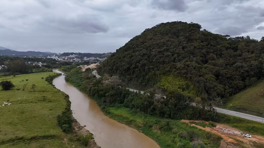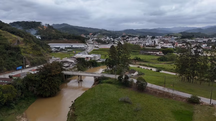 A paisagem desta quinta-feira reforça o retrato climático do mês. Com céu encoberto e temperaturas amenas, Brusque passou o dia pintada em tons de cinza.