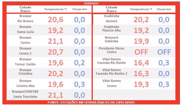 Domingo e o tempo em Brusque
