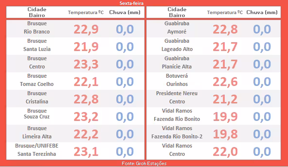 Seguindo com a edição desta sexta-feira, abordaremos agora as informações referentes ao monitoramento das condições do tempo na região de Brusque durante a última madrugada.