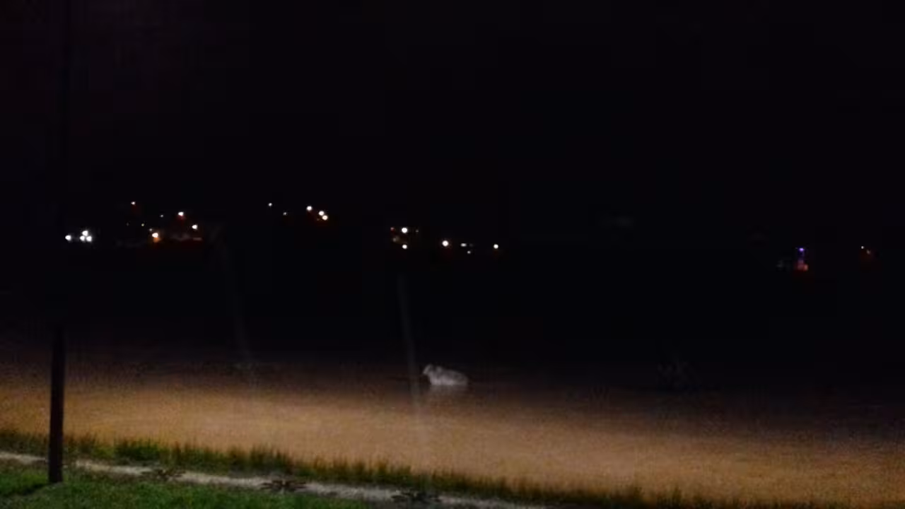 Animal está imóvel em via alagada, próximo a Ponte João Libério Benvenutti, a ponte da Bilu